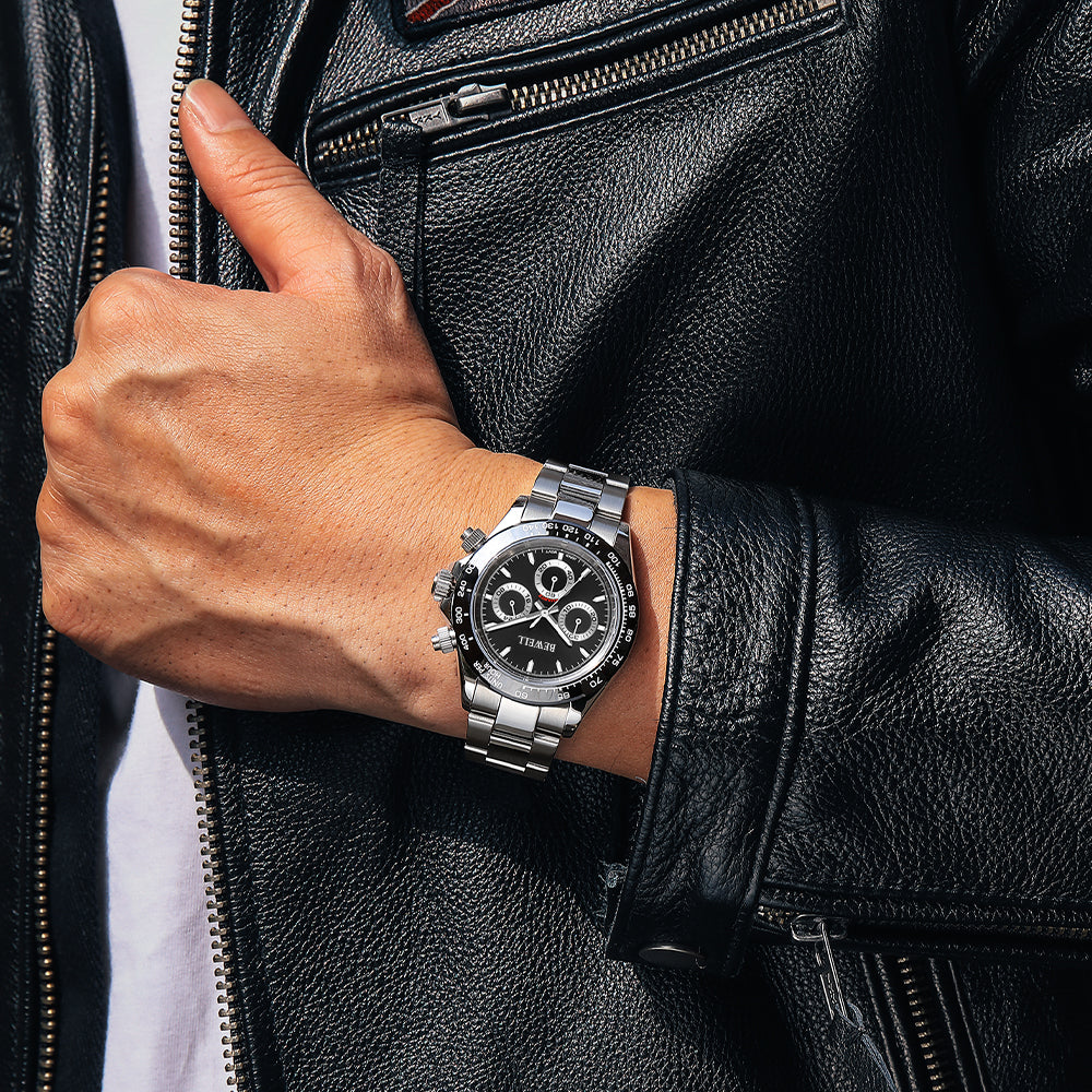 Panda Dial Chronograph Stainless Steel Multifunction Watch