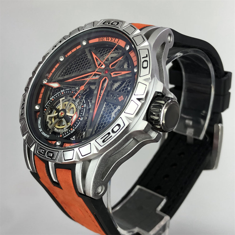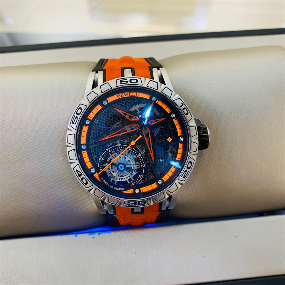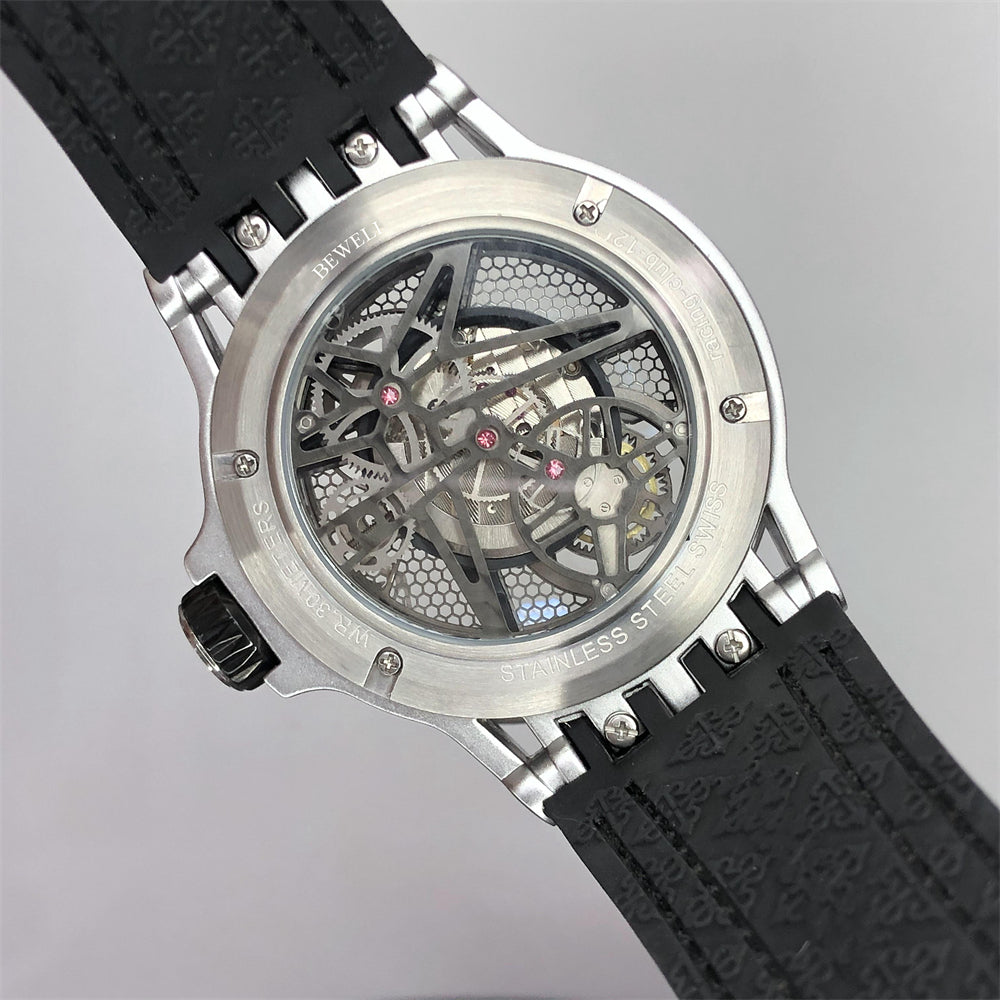 Stainless Steel Watch with Star-Shaped Skeleton Dial and Transparent Back