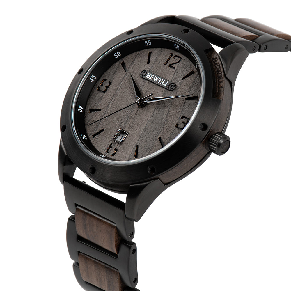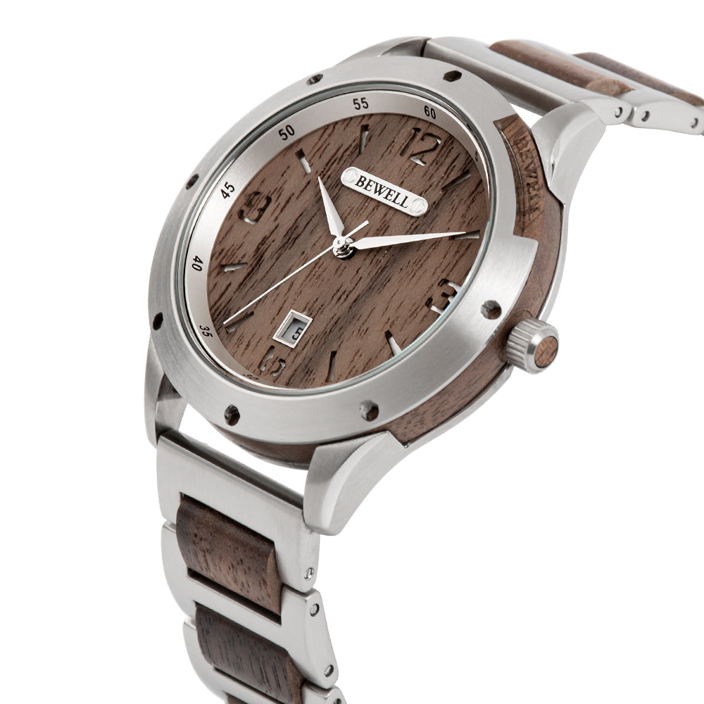 1.Case make of stainless steel andnatural woodgenuine leather strap